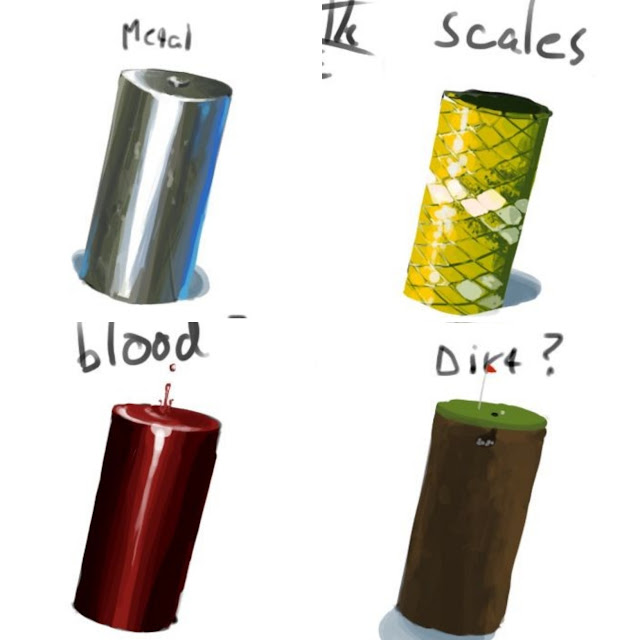 Una vez identificadas, hay que tener en cuenta que material queremos representar. Aunque la forma básica sea un cilindro, no trabajaremos igual un cilindro de tela o lana que uno de plástico o metal. En sitios como Pinterest y similares hay cantidad de ejemplos de texturas y acabados aplicados a una misma forma que nos pueden servir de ayuda al caso.